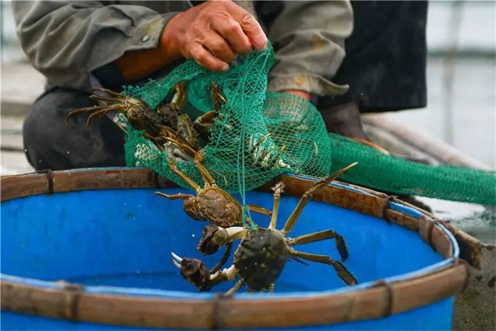 选蟹时,捏捏蟹脚是否结实来判断其新鲜程度,新鲜的大闸蟹会感受到微弱的弹力。